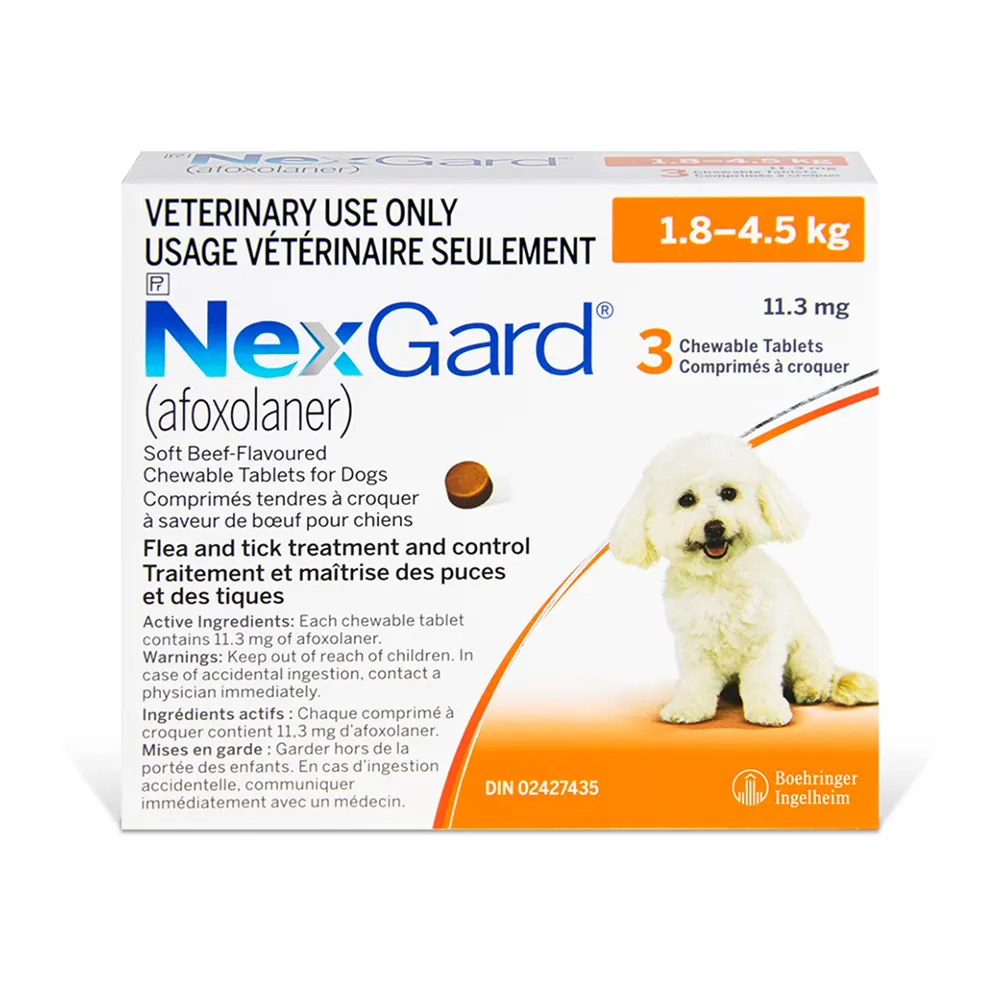 Boehringer Ingelheim NexGard Soft Chewable Tablets 3 Chewable Tablets Orange 1.8 – 4.5 kg