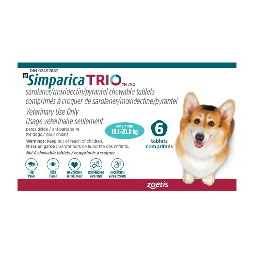 Zoetis Simparica TRIO 6 Tab Aqua 10.1 – 20 kg